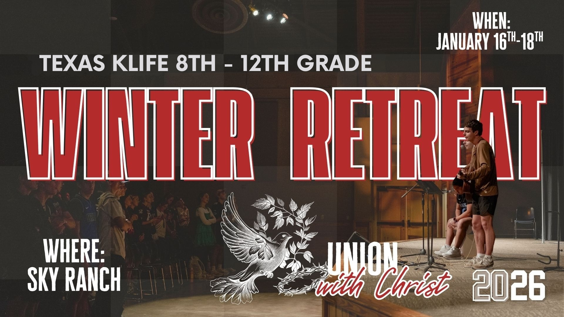 Texas KLIFE Retreat 2026Friday, January 16th - Sunday, January 18th(8th - 12th grade students) Register NOW